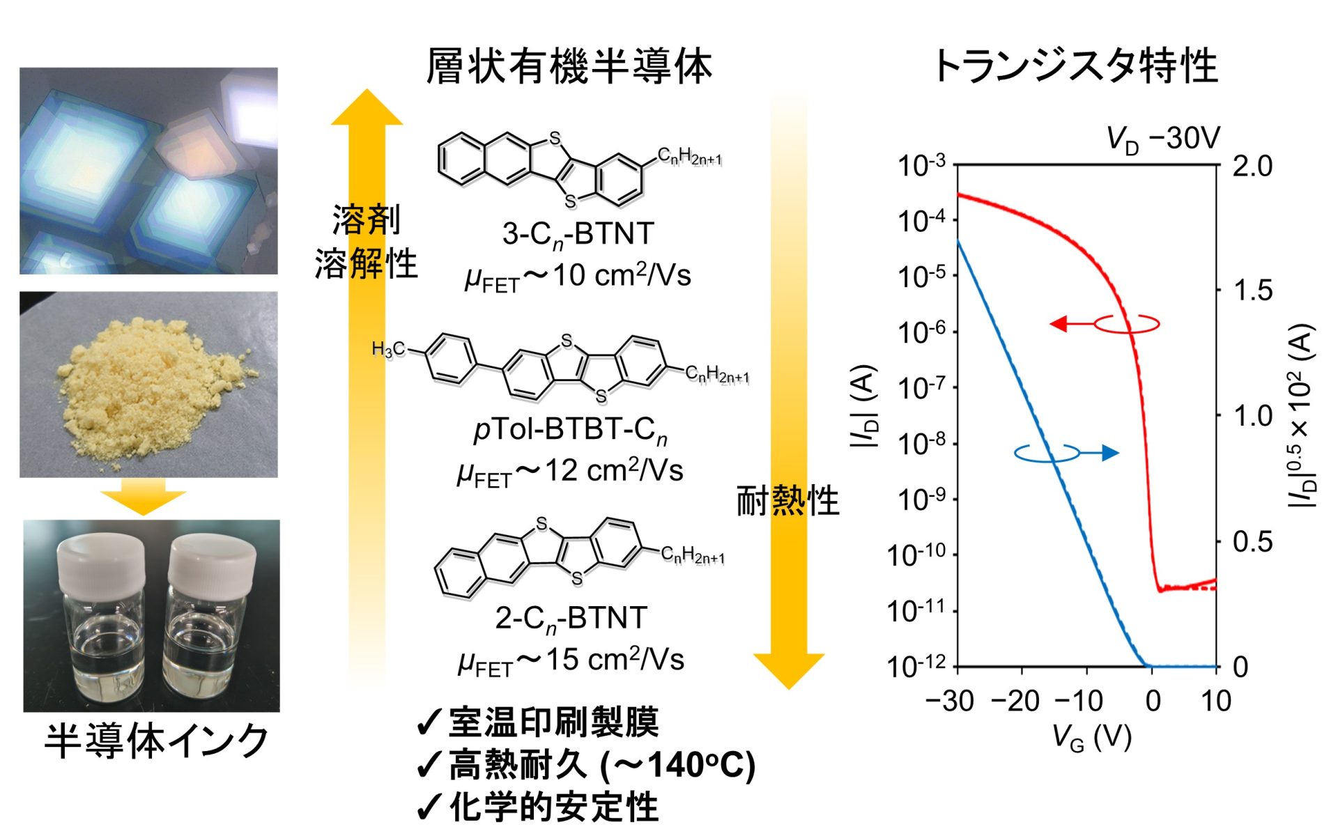 層状有機半導体インク:印刷技術で半導体薄膜を作る